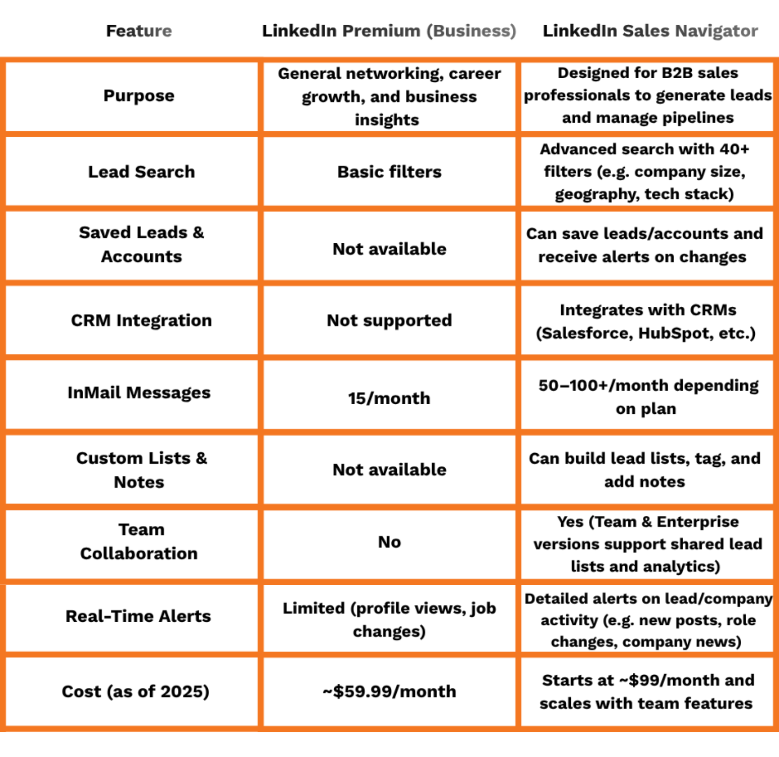 Here’s a clear breakdown of the difference between LinkedIn Sales Navigator and LinkedIn Premium: